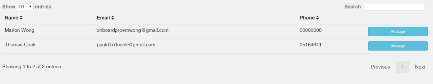 In the above example there are only 2 landlords but you can have as many as you like. To view more landlords in this list you can change how they are viewed by changing the entries shown option (top left)